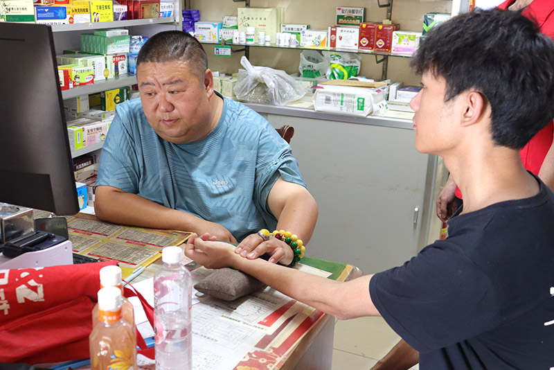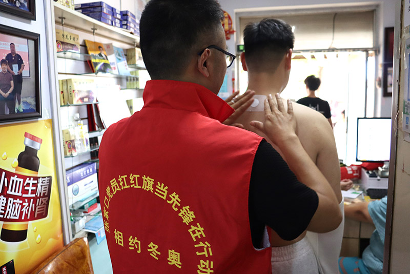 讲解完理论知识,张强开始为居民贴敷三伏贴。他小心翼翼地撕开药贴,先仔细确认居民的穴位位置,再轻柔地将药贴精准贴好,同时还不忘叮嘱注意事项:“大叔,贴敷期间要避免吃生冷、辛辣的食物,尽量别吹空调,要是感觉皮肤有发红、发痒的情况,就赶紧把药贴取下来。”面对年纪较大、理解较慢的居民,他更是不厌其烦地重复讲解,直至对方完全明白。