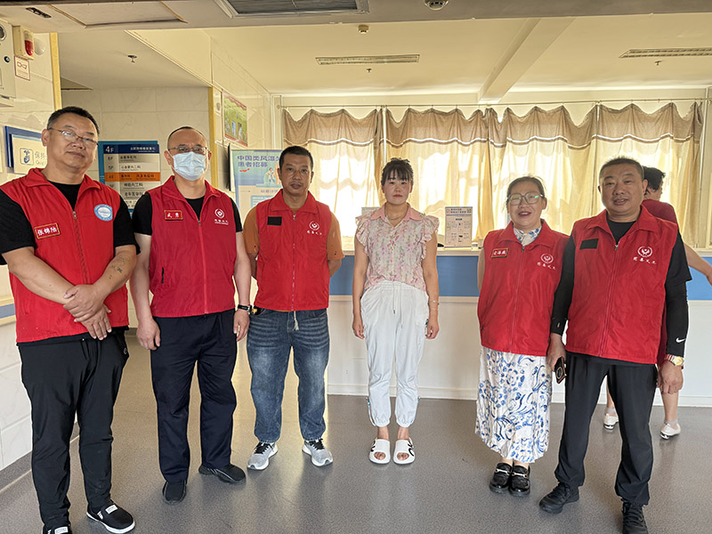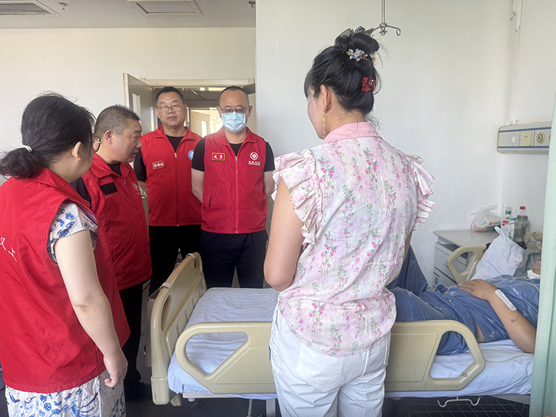 但人间自有真情在!当同心携手为爱传递义工团队得知闫女士一家的艰难处境后,迅速行动起来。大家纷纷伸出援手,踊跃筹集救助款。每一笔捐款,都饱含着志愿者们的深情厚谊;每一份心意,都承载着对患者早日康复的殷切期盼。6月25日上午张家口市桥东区慈善义工联合会会长李军带领同心携手志愿团队志愿者张锦陆、武勇、安海燕、张志刚走进张家口附属医院慰问患者。当志愿者代表武勇将筹集到的6000元救助款送到患者家人手中,那一刻,病房里弥漫着温暖与希望,患者和闫女士眼中闪烁着感动的泪花,这份爱心如同黑暗中的一束光,为他们带来了生的希望,照亮了前行的道路。