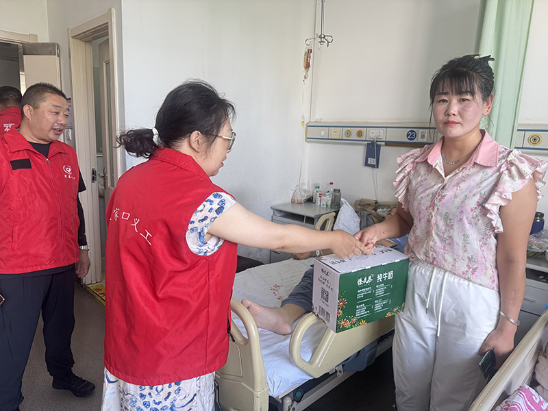 李军会长与患者家属耐心的询问着病情,当听到患者家中还有两个求学的孩子需要供养,不知如何生活时,会长立刻告知家属可以为其两个孩子申请助学金补助,让两个孩子可以安心读书,桥东区慈善义工联合会及同心携手义工队会尽最大努力帮助这个家庭。并嘱咐他们对生活不要气馁,不要沮丧,只要心中有希望,社会就不会放弃你们。 此次“情暖张北,爱心相伴”公益活动,不仅给予了闫女士一家物质上的帮助,更在精神上给予了他们强大的支持。它让我们看到,在困难面前,只要大家齐心协力、携手相助,就能汇聚成一股强大的力量,帮助那些身处困境的人渡过难关。