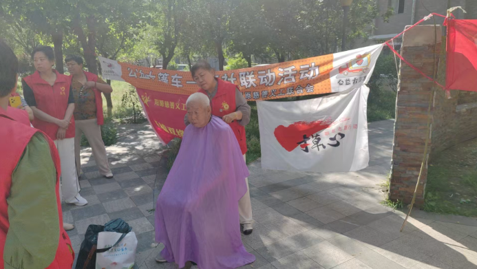 反诈宣传活动也正在开展,韩玉启队长带领史金柱、薛燕芬、张建清、张作英等公众义工结合实际案例,通过生动的讲解和互动问答,向居民普及反诈骗知识,提高大家的防诈骗意识,守护好居民的钱袋子。志愿者张秀荣用娴熟的技术为老人修剪头发,一边剪一边唠家常,欢声笑语,气氛融洽。
