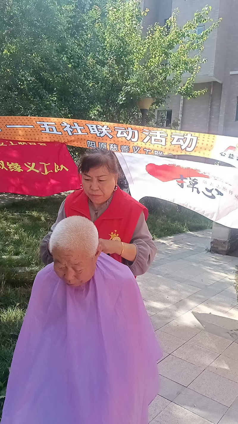 紧邻着捐赠区的是免费理发点,一把剪刀、一把梳子、一块围布,志愿者理发师便忙碌了起来。他们耐心地询问着每个人的需求,细致地帮他们修剪着头发。看着镜中焕然一新的自己,老人们露出了欣慰的笑容。