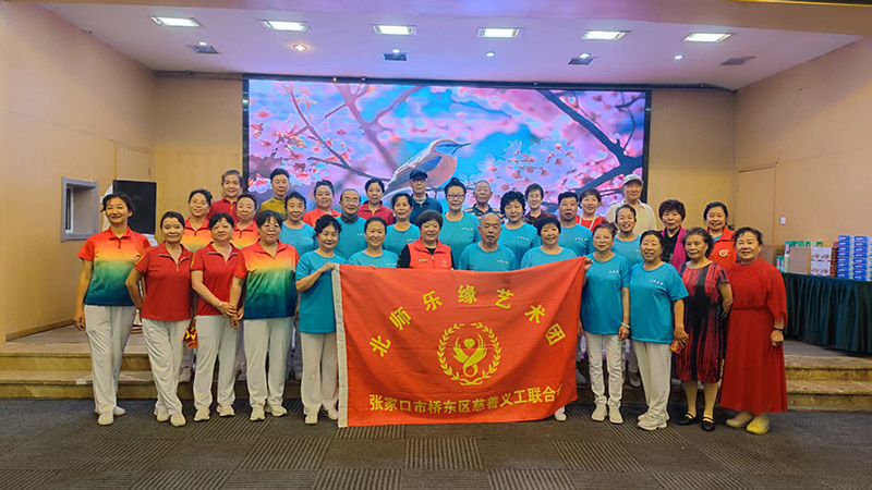 水,是生命之源,与每个家庭的健康息息相关,家用净水的理念遇上精彩纷呈的文艺展演,一场兼具公益温度与健康知识的活动开始啦。7月19—28日,由京东商城线下工厂举办的以《家用净水 健康全家》为主题的活动在张家口四海暇旅会议厅拉开了帷幕,为优化家庭饮用水质,提高身体健康增强免疫力,本次展演以促进健康生活理念与丰富中老年精神文化生活为宗旨,广邀张家口市各中老年艺术团体,共同打造了一场全方面的精彩文艺演出。北师乐缘义工之家9个分队共计160名志愿者在队长吴浩然的带领下,受邀参加25日和27日活动,共三场演出,为现场观众带来了一场融合艺术魅力与健康关怀的文化盛宴。