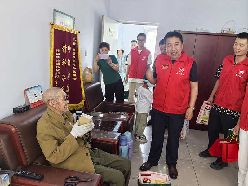 在庆祝中国人民解放军建军95周年之际,为弘扬拥军优属光荣传统,表达对退役军人的崇高敬意和深切关怀,张家口经开区慈善义工联合会开展走访万全区光荣院慰问退役老兵活动,为老兵们送去节日的祝福和诚挚的问候。