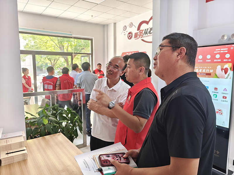调研期间,联合会秘书长臧沙沙向何秉群副主席一行介绍了联合会的基本情况和发展历程。联合会贾庆贺主席展示了“五社善治”APP的功能与应用,展现了联合会在推动志愿服务数字化、智能化方面的创新成果。随后,双方移步二楼会议室进行座谈交流。会上,郭虔主席汇报了联合会上半年的工作成果及下半年的工作计划;贾庆贺主席就政府关注度、经费保障、社企认定、志愿服务回馈机制等方面提出建议。