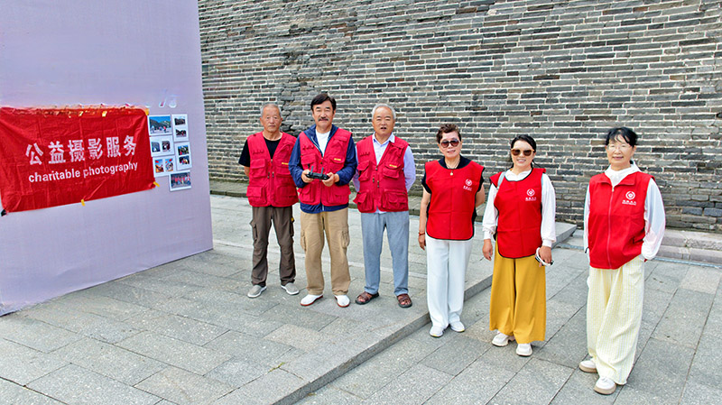 清晨的阳光洒在古老的大境门城楼上,志愿者们早早到位,快门声与欢笑声交织成趣。从白发苍苍的老人到牵手漫步的情侣,从举家出游的游客到晨练路过的市民,都能在这里免费获得定格美好瞬间的照片。