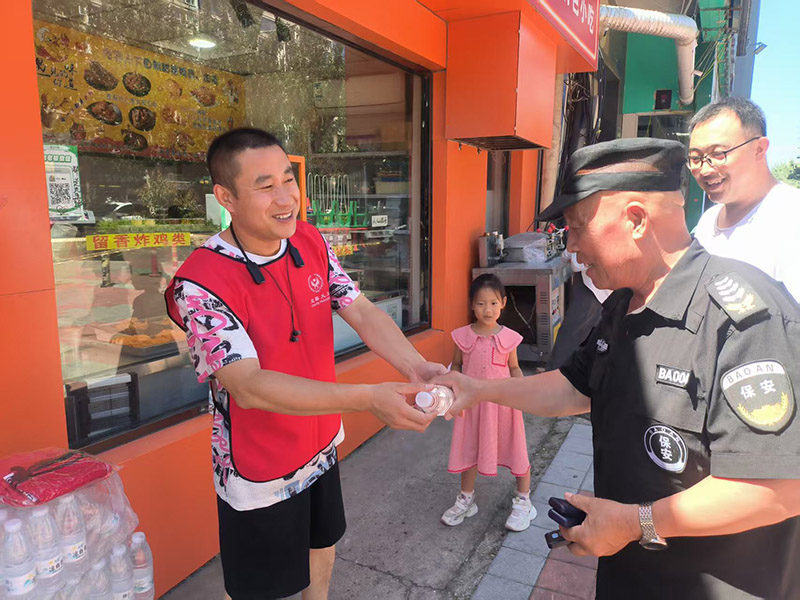 副队长马治彪表示:“一瓶水虽小,但它是城市对劳动者无声的问候。我们搭建的不仅是一个水站,更是人与人守望相助的驿站。”爱宝队以一瓶水的善意,为城市的血脉注入了最清澈的温情——当每一滴汗水都被看见,每一次奔波都被珍视,这便是对“劳动”二字最朴素的礼赞。