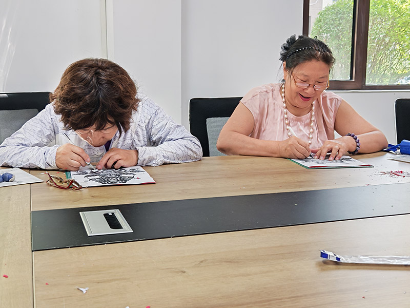 2. 健身养生课程:传统功法,强健体魄 - 八段锦:老师结合中医养生知识,逐式讲解“双手托天理三焦”“调理脾胃须单举”等动作要领。课堂上,学员们跟着口令缓慢舒展身体,在“摇头摆尾去心火”“背后七颠百病消”的动作中,放松肩颈、活络气血。80岁的张爷爷说:“练完一套下来,肩不酸了,腰也舒服多了,比在家坐着强多啦!” 3. 手工艺课程:指尖生花,传递匠心 - 剪纸:课程以“花瓶”为主题,邀请非遗传承人从传统剪纸的对称美学讲起。老师先示范剪制花瓶的基础轮廓——宽腹、细颈的弧线如何通过对折剪裁一气呵成,再教大家用“阴剪”“阳剪”结合的手法,在瓶身添上缠枝莲、如意纹等吉祥纹样。课堂上,学员们握着剪刀屏息专注,2小时后一幅幅作品诞生。学员们互相举着作品比对,“你这瓶口的花边真灵动”“我这花纹密,得裱起来才好看”,满屋的笑语里,藏着指尖绽放的成就感。