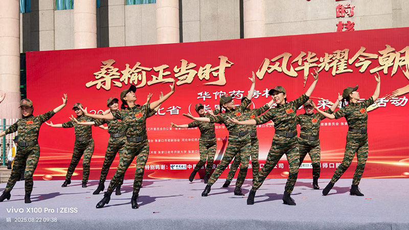 2025年8月22日,由张家口市老龄办、市民政局等部门联合主办,华佗药房冠名支持的 "华佗药房杯"2025河北省(张家口)老年风采展示活动在市民广场盛大启幕。在舞蹈队任芳队长带领下,爱宝队金龙水兵舞团选送的舞蹈节目《绿色军衣》演绎赢得全场掌声,成为开幕亮点。舞台光影中,15名志愿者平均年龄55岁,身着笔挺军装,以铿锵步伐与恢弘队列重现军营岁月。虽然已年过半百,但依然对军营生活和军装充满热爱和敬仰。