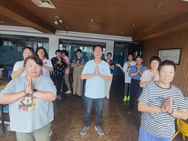 在练习环节中,大家认真地跟随着霍队长的带领摆动手臂,每一个动作都力求精准。霍队长边带领边调整大家的动作细节,在不断的练习中,大家的动作越来越整齐,也越来越到位。
