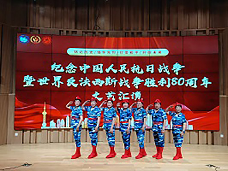 此外,朗诵《不朽》、手语表演《感恩的心》、群舞《旗帜颂》等节目也从不同角度展现了对抗战历史的铭记和对先烈的敬仰。整场文艺汇演主题鲜明,内容丰富,通过多种艺术形式回顾了中国人民在抗日战争中所做出的巨大牺牲和卓越贡献,表达了对和平的珍视和对未来的美好期许。