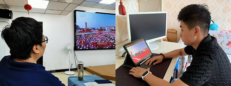上午9时,中共中央总书记、国家主席、中央军委主席习近平发表重要讲话。全体人员肃立聆听,现场氛围庄重肃穆。总书记振奋人心的讲话,令在场人员深受教育与鼓舞,强烈的民族自豪感在每个人心中激荡。