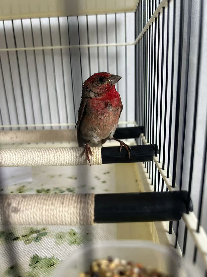 随后,环森食药大队工作人员第一时间与阳原野生动物救助中心副理事长米佳晨取得联系,说明三只普通朱雀的解救情况,随即驱车将它们送往救助中心宠物医院。到达医院后,工作人员将三只普通朱雀小心移交至接收人米佳晨手中。米佳晨仔细查看了朱雀的状态,发现它们因长时间被困,羽毛有不同程度磨损,精神略显萎靡。他当场开具了接收证明,并迅速安排医护人员对三只普通朱雀进行进一步的健康检查与后续养护,确保它们能尽快恢复正常生理状态。