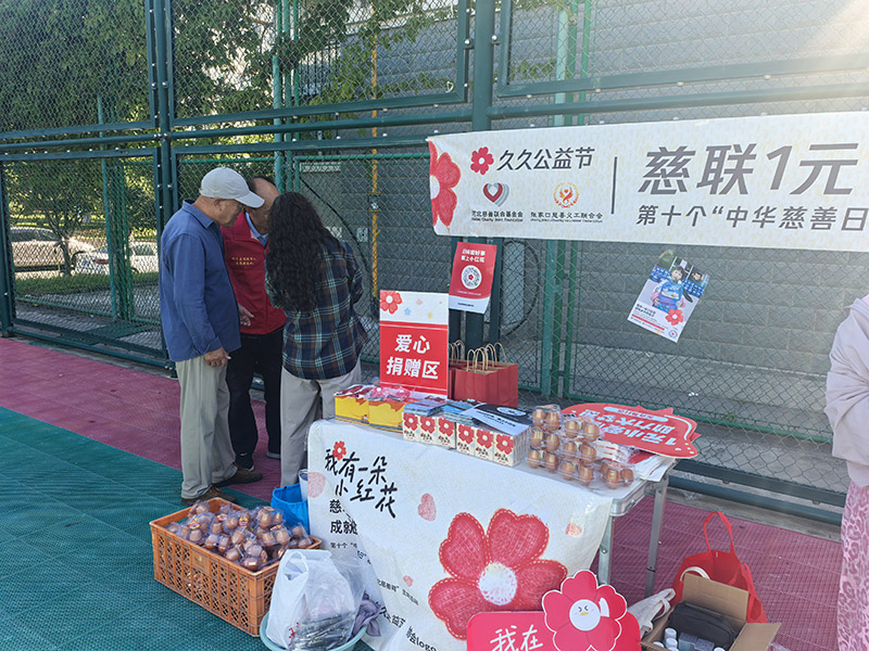 9月7日,由福德仁爱公益队队长毛艳芳,第十个“中华慈善日”暨第三届“河北慈善周”主题活动在桥东区东方苑社区篮球场开展。东方苑社区党委书记任剑楠不仅在社区微信群发通知,还亲自到现场参加捐款送礼品活动,给社区居民起到了带头作用。河慈联张家口工作站负责人赵欣在活动中一直跟着大家忙里忙外,全程陪同配合活动的开展。福德仁爱公益队志愿者呼叫亲朋好友们过来扫码捐款领鸡蛋,还有小学生带家长来捐19.9领取油画活动。大家互相转告前来捐款领鸡蛋,献爱心。让这次活动搞得非常接地气。