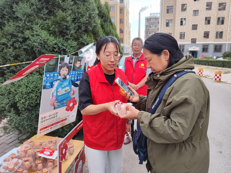 宣慈联副秘书长李媛媛全程在现场统筹协调,她向居民们耐心讲解慈善日的意义与“一元侠”活动的初衷。夕阳红老年志愿服务队队长李全花虽已年过六旬,却始终活力满满地忙碌着,从给鸡蛋装袋到引导居民排队,每项工作都做得细致认真,也感染着现场的每一位居民。会员部部长刘冬杰负责活动登记与物资统计,她仔细核对每一位参与者的信息,确保鸡蛋准确发放。志愿者刘杰则忙着维持现场秩序,时不时提醒大家注意安全,用热情的服务为活动保驾护航。