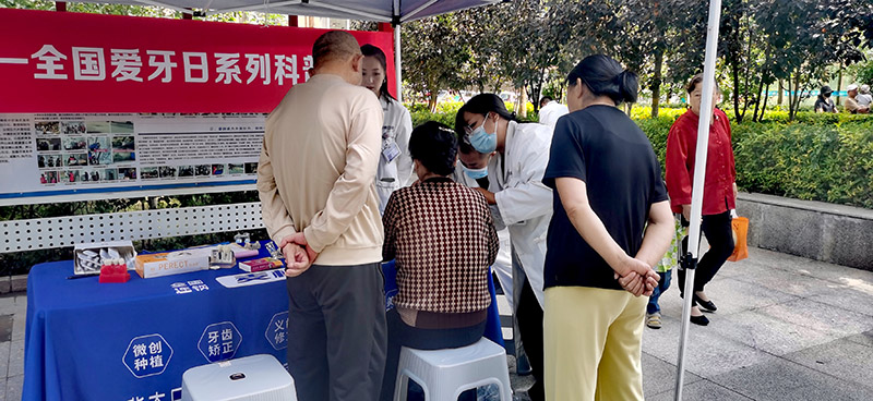 工作人员还与志愿者围绕“口腔健康”核心,通过多种形式向居民普及知识。志愿者们协助摆放宣传展板,清晰展示口腔疾病预防、正确刷牙方法等内容;同时向过往居民发放科普手册,用通俗的语言讲解口腔健康与全身健康的关联,比如牙周病可能引发的全身性问题,帮助居民建立“护牙即护全身”的意识。