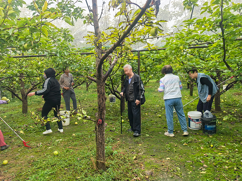 阳光透过梨园枝叶,洒下斑驳的光影,空气中弥漫着清甜的梨香。志愿者们陆续抵达,熟悉的笑脸在秋景中格外亲切。不同于往日帮扶时的紧张节奏,此刻大家卸下疲惫,有的驻足观察枝头沉甸甸的果实,有的与许久未见的伙伴热情寒暄,清脆的笑声与林间的鸟鸣交织,为静谧的梨园注入了活力。队长毛艳芳的感想让大家明白了一个道理:“我们因‘公益’结缘,用爱心温暖他人,今天在这丰收的梨园里,既是庆祝祖国的生日,也是为我们的公益初心‘充电’。”队长的话语简短却有力,回顾了近年来公益队在助老、助学、社区服务、禁戒毒宣传、文艺下乡中的点滴成果,也鼓励大家在团建中放松身心,增进彼此的了解与信任。毕竟,每一次顺利的公益行动,都离不开团队成员间的默契配合。让陌生的距离逐渐拉近,让团队的凝聚力在不断提升。