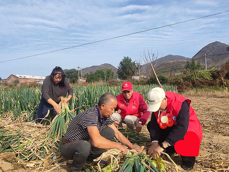 10月4日,正是金秋时节,田野里一片繁忙。福德仁爱公益队老党员、老军医李书庭和队员张英、张宝珍到桥东区大仓盖乡人头山村的一家孤寡老人梁万荣家里,帮助老人收大葱。总计两亩地,收获大葱一万多斤,解决了老人的燃眉之急,丰富了公益队的服务内容,增强了公益队伍的影响力,帮助了需要帮助的人。