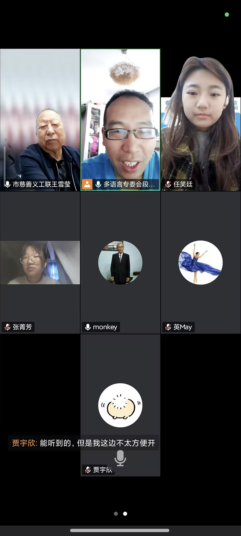 2025年10月14日上午8:30,第89届轮值委员会第2次会议以线上形式召开。参加会议的有市慈善义工联第89届轮值会长、多语言专委会会长段宏毅,党委副书记冀桂宝,老年英语志愿服务队队长侯宝存、WarmWings英语志愿服务队队长贾宇欣、张家口大学生AIR志愿者服务队队长任笑廷、张家口外语角服务队队长邢利英、FlyingEagle志愿者团队骨干张菁芳,会议由轮值会长段宏毅主持。