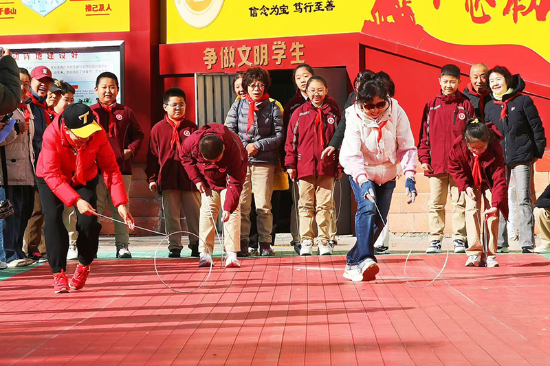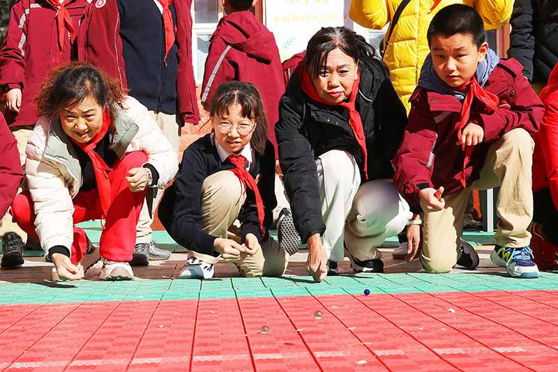 校园里的“时光派对”格外热闹。与菜园街社区 光明街社区共同在宝善街小学举办的“光阴的故事·年代运动会”上,老年朋友与孩子们手牵手开启了一场跨越年龄的“时光对话”。一条鲜艳的红领巾在老少手心间传递,不仅连接起两代人的童年,更传递着敬意与温暖。随后,滚铁环、抽陀螺、骑自行车、弹玻璃球、拍画片等经典老游戏依次登场,老人们放下拘谨,重拾儿时记忆——有的俯身调整铁环方向,有的挥鞭抽打陀螺,熟悉的动作与笑声引得孩子们阵阵欢呼,校园里满是岁月交融的温馨场景。