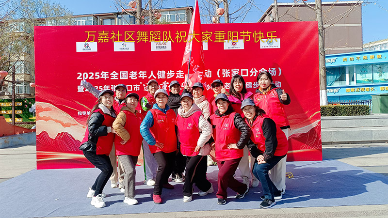 金秋十月,重阳又至。在这敬老爱老、温情洋溢的节日里,万嘉社区公益队于10月28日上午8点半,在队长冀生梅的带领下,参加了“2025年全国老年人健步走大联动”张家口分会场活动。全体队员身着统一活动服装,外配红马甲,头戴灰色太阳帽,形成一道整齐而亮丽的风景线,展现出良好的精神风貌。