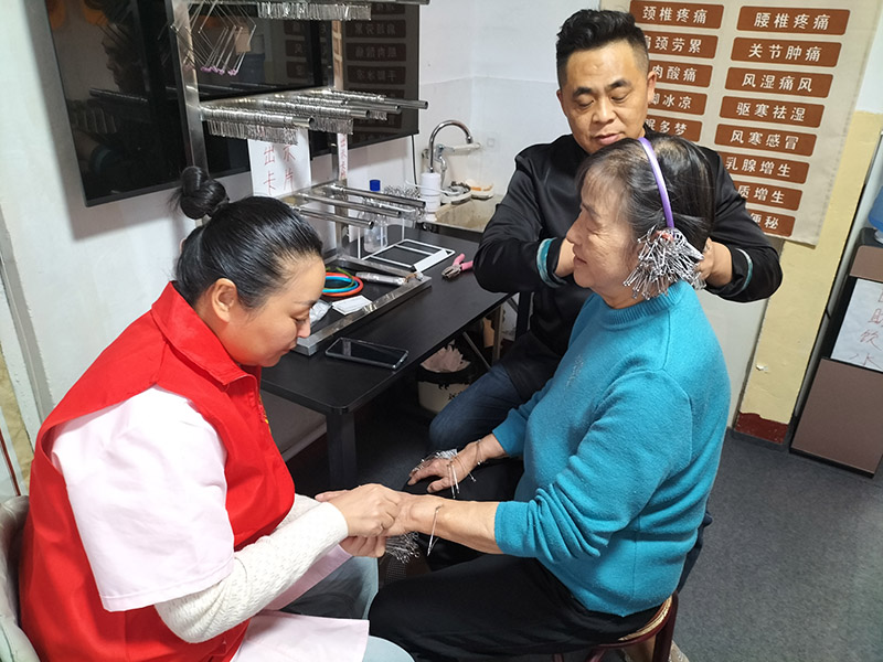 “咱们的身体是有机整体,经络贯穿全身、脏腑相互关联,非遗卡环点穴正是以‘脏腑同调’为核心,以环代针疏通经络,让身体气血循环回归平衡。”杨老师一边手持非遗卡环精准点压穴位,一边通俗讲解理疗逻辑。 义工们常年奔走公益一线,颈肩酸痛、腰背僵硬、关节不适等慢性问题频发,杨老师凭借“观耳辨病”的独特技法,从整体出发针对性调理,让每一次理疗都兼顾局部不适与全身养护。调理后,“肩背酸痛缓解太多了”“浑身通透轻快”的称赞声此起彼伏,义工们围坐分享切身感受,氛围格外温馨。