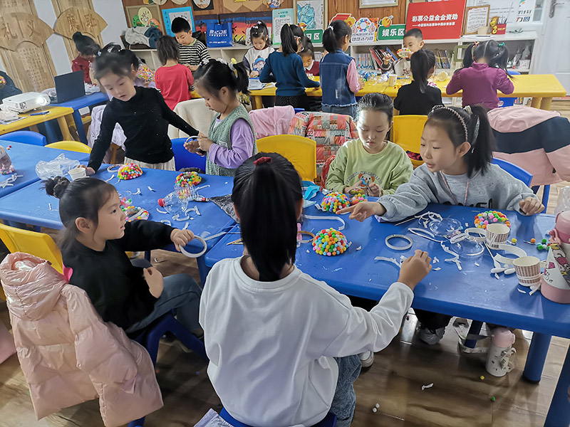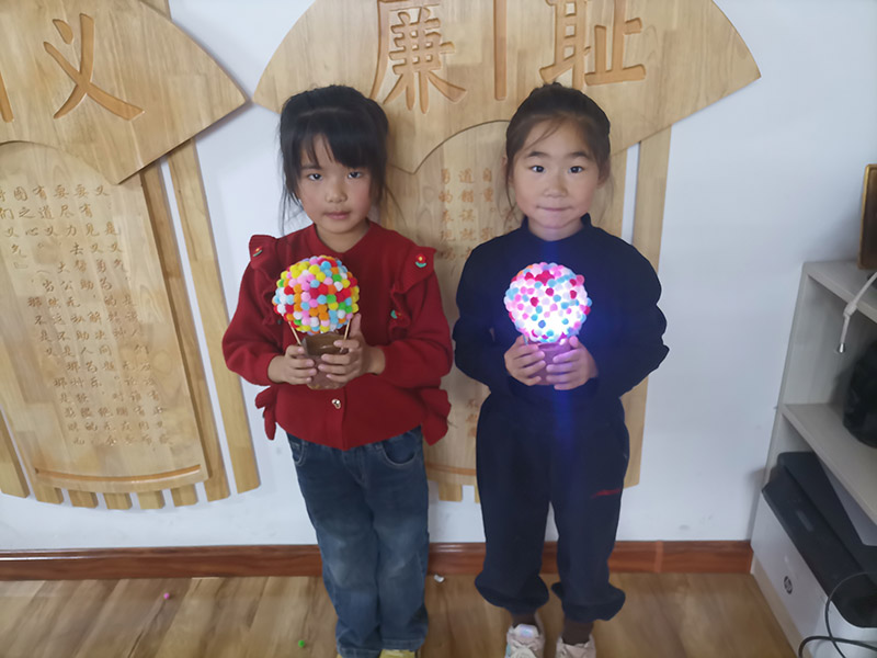 在海豚妇女儿童之家的活动室里,一场别具一格的“热气球彩虹灯”手工课堂正在热闹开展。 老师们提前为大家准备了丰富的手工材料,五颜六色的小毛球、一次性纸杯和半圆形杯盖整齐地摆放在桌面上。孩子们用自带的双面胶,将毛球小心翼翼地粘贴在杯盖上,依据自己的喜好挑选颜色,充分发挥想象力,设计出独一无二的“热气球”造型。有的小朋友将毛球紧密排列,打造出饱满的视觉效果;有的则错落有致地粘贴,仿佛气球在空中飘荡。