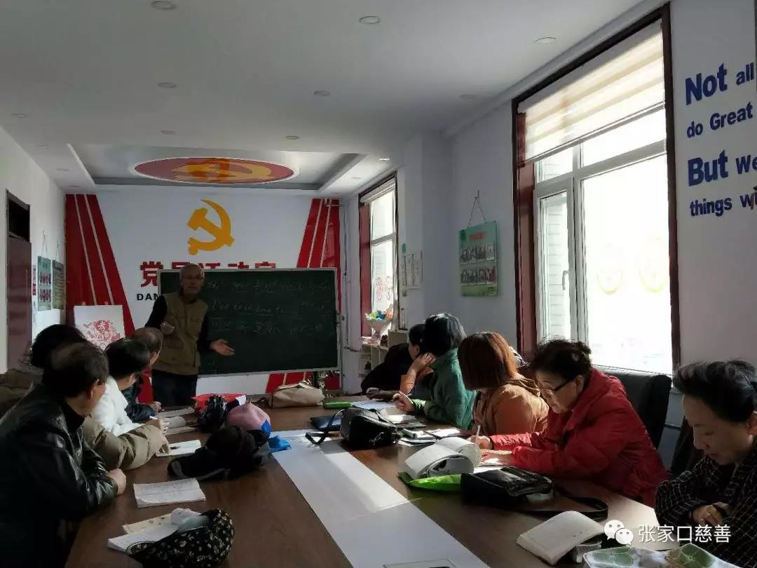 2019年3月30日上午,张家口慈善义工联合会冬奥英语老年志愿服务队英语培训班在长宁街社区进行第48次活动。侯宝存老师主讲,内容为英语简单口语,《您是第一次来张家口吗?》对话,效果比较好。因为这个社区的学员年龄偏高,对英语口语接受比较慢,所以,侯宝存采用了适合他们学习的‘’漫步教学法":不快,不紧,不急,不提要求。课堂上努力创造一种宽松的学习环境,大家在没有压力的心境下,自然的、潜移默化的接受口语的训练。