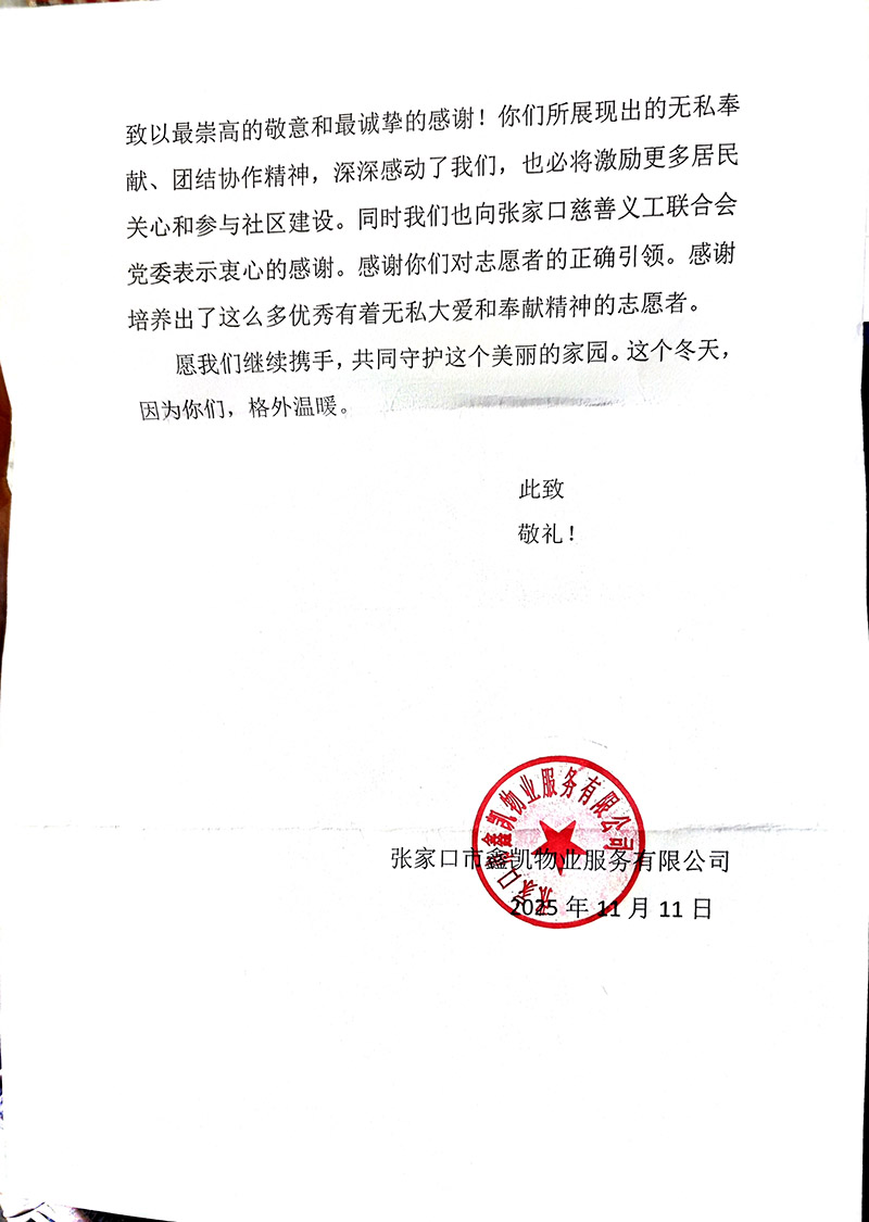 【妇联】致张家口慈善义工联合会妇联及益人行知志愿者服务队的表扬信
