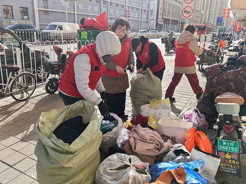 居民们热情高涨,纷纷提着整理好的旧衣物赶来,有干净整洁的外套、毛衣,有适合老人和孩子的保暖衣物,还有崭新的围巾、手套等生活用品。有的家里有很多孩子穿小的衣服,扔了可惜,看到公益队的捐赠倡议,就赶紧整理出来,希望能帮到有需要的人。还有一些小朋友亲自到现场捐赠自己的衣服。在捐赠过程中,志愿者们耐心细致地为每位捐赠者登记信息,对捐赠的衣物进行分类筛选,确保衣物干净完好,适合捐赠。同时,公益队还通过大车条幅向居民宣传“五社联动”的理念和意义,倡导更多人参与到社区公益事业中来,形成“人人关心公益、人人参与公益”的良好氛围。此次活动共接收各类旧衣物1000余件,其中福德仁爱公益队老党员齐兰珍用自行车一次性推去两大包。经分类打包后,将由福德仁爱公益队队员打包成五个大包,由专用车辆,运往统一地点进行分类、分发。