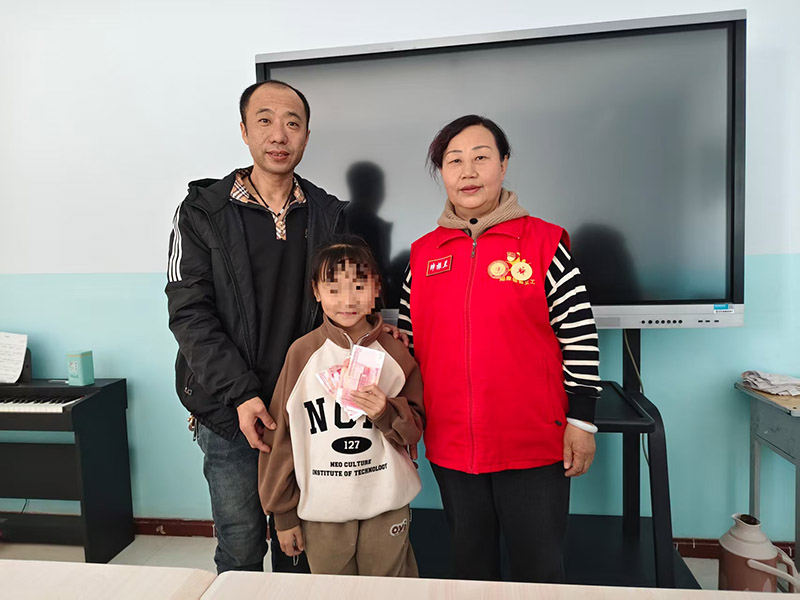 2025年12月4日,阳原慈善义工联合会会长刘立东、妇联主席帅振兰、办公室主任翟秀霞一行3人,怀着对困境学子的深切关怀,走进阳原县实验小学,为一年级家庭困难学生侯某送上“暖阳行动——代理爸妈一对一”项目助学金,用实际行动传递爱心与温暖。