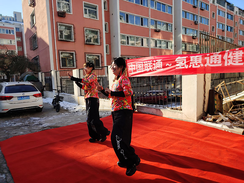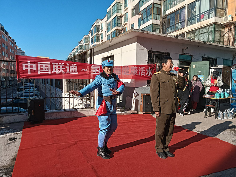开业仪式现场热闹非凡,首先由中国联通氢惠通的领导上台致辞,为健康水站送上开业大吉的祝福,同时为到场的每位居民赠送了一袋健康水,贴心的举动赢得了在场群众的阵阵掌声。 伴随着喧天的锣鼓声,精彩的文艺汇演正式拉开帷幕,为开业仪式增添了浓浓的喜庆氛围: