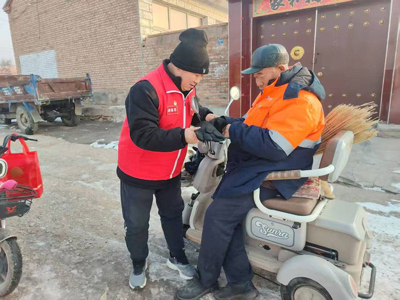 12月19日,乡村爱心公益团队在队长郝海军的带领下,走上大街给环卫工人发放手套并和环卫工人一起打扫卫生。参加本次活动的志愿者有刘瑞敏、张秀英、陈志清。