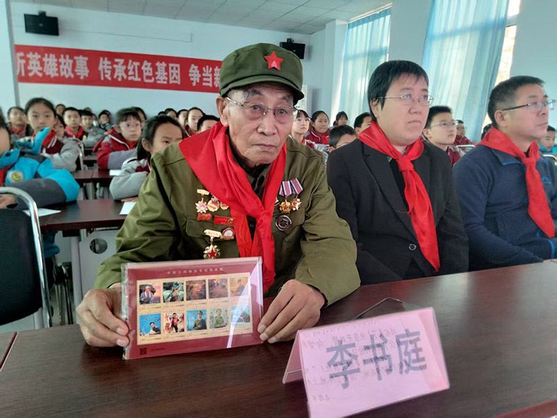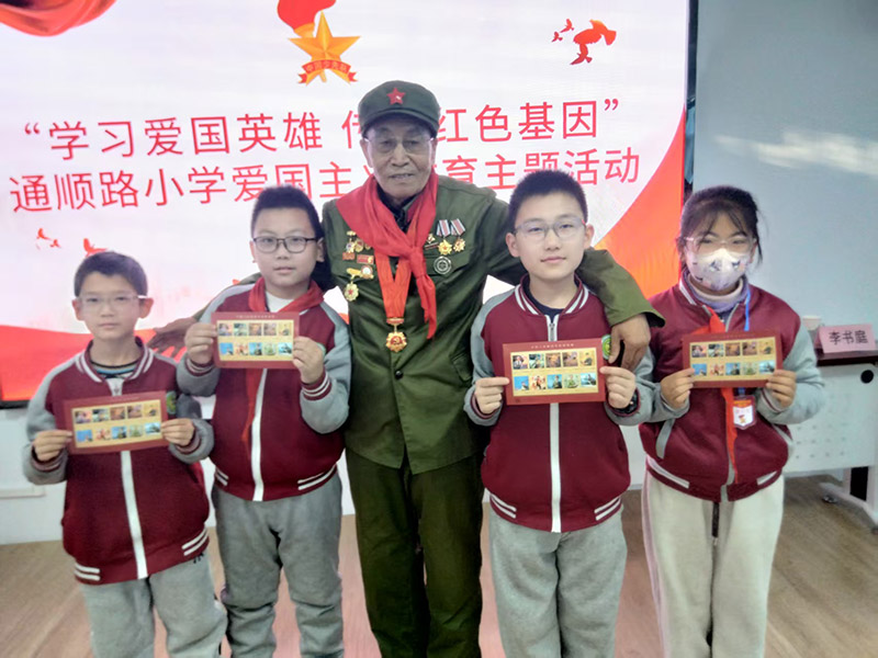 李书庭带领孩子们在互动环节中,孩子们纷纷分享自己的感悟。有的孩子说:“我们要缅怀先烈,好好学习,珍惜现在的生活,长大了报效祖国,做一个有用的人。”有的孩子立志:“要好好学习,长大以后也要参军,保家卫国,守护祖国的平安。”李书庭还向部分学生赠送了十位革命先烈的纪念邮票,鼓励孩子们从红色经典中汲取奋进力量。