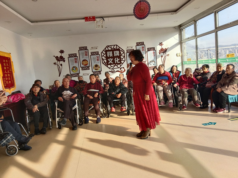 紧接着,形式多样的节目轮番登场,掀起一波又一波的欢乐浪潮。李俊连队长与搭档联袂带来二人台《小拜年》,地道的乡音、喜庆的曲调,将浓浓的年味播撒在养老院的每个角落;经典歌舞《东方红》旋律响起,熟悉的歌声引发老人们的深情共鸣,不少长者跟着旋律轻声哼唱,眼神中满是回忆;活泼诙谐的扇子舞《嫁个好老汉》创意十足,队员们生动俏皮的表演,引得现场笑声、掌声此起彼伏;马洪花老师登台献唱《父亲》,歌声深情又不失幽默风趣,字里行间满含对父辈的感恩与关爱,深深打动了在场的每一位观众;经典二人台剧目《逛新城》生动演绎,将新时代的发展变迁与美好生活画卷徐徐展开,让老人们感受到时代的蓬勃生机。