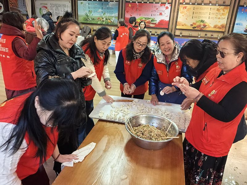 活动筹备阶段,书记杜同会、副队长张建华、妇联副主席殷果花与秘书长吴静如便率先垂范,提前一天专程前往菜市场精心采购包饺子所需食材及各类活动物资。从新鲜的蔬菜、肥瘦相间的肉馅,到调味的香料、搭配的凉菜食材,四人细致挑选、反复核对,只为让志愿者们吃得安心、玩得尽兴。12月29日清晨,天刚微亮,四人又早早将分装整齐的食材运送至聚会场地,有条不紊地进行前期整理与布置,为活动的顺利开展筑牢基础。