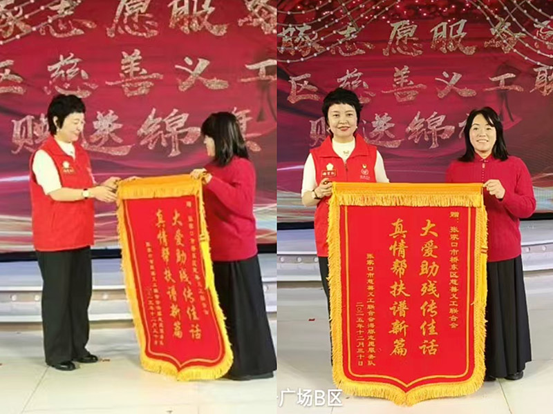 在这个意义非凡的日子里,海豚志愿服务队向桥东区慈善义工联合会送上一面印着“大爱助残传佳话,真情帮扶谱新篇”的锦旗。这十二个字,凝聚着服务队对联合会多年来悉心指导、鼎力支持的感恩之情,更是双方携手深耕公益事业的生动见证。