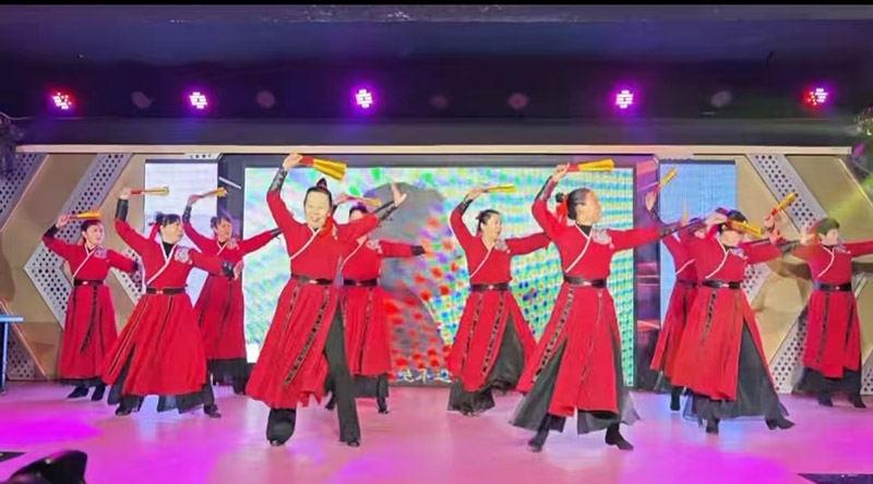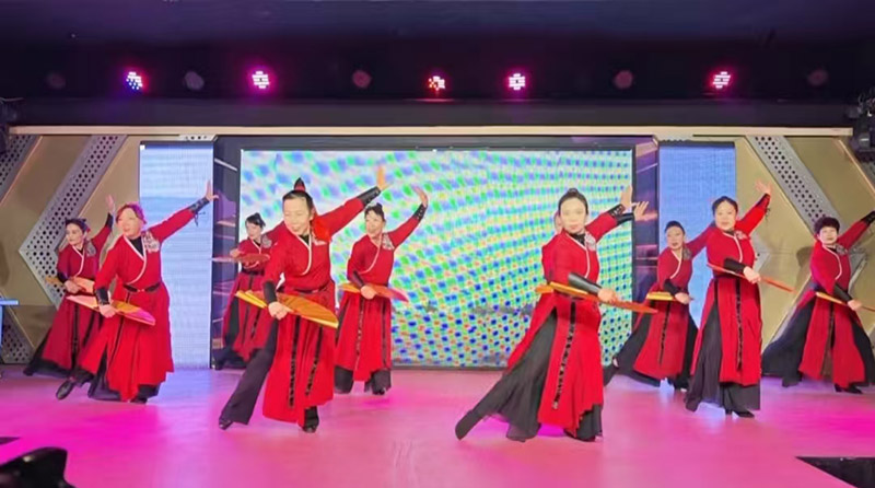 演出过程中,舞者们以饱满的热情、整齐划一的动作感染着在场每一位观众。彩扇翻飞间,红色舞服与金色扇面交相辉映,恰似冬日里燃烧的火焰,驱散了寒意,点燃了现场气氛。当最后一个动作定格,激昂的音乐落下帷幕,现场响起雷鸣般的掌声,观众们纷纷起身喝彩,不少人拿出手机记录下这精彩瞬间。