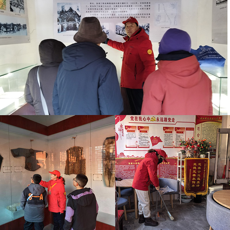 元旦期间人们正沉浸在节日的欢乐与相聚中,我们的公益讲解员们衣着红色队服头戴小红帽,穿梭在各个展馆中,为传承张家口的人文历史,诉说着一个个动人的故事。他们的身影成为了景区里一道温暖的风景线。他们的热情服务,让更多人读懂了堡子里的历史厚重,也让这座600余年的古城,在元旦喜庆氛围中,焕发着新的生机与活力。他们是:郭卫兵.宋志华.耿花.季建中.苑哓凤.姚文荣。耿花看到办公室有些沉土,便立刻拿起扫帚,抹布,开始忙,一会儿的时间将屋里打扫的干干净净。