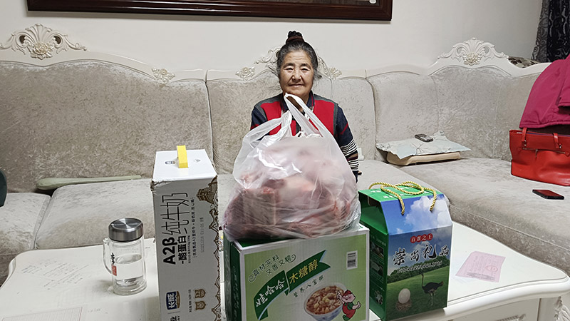本次慰问活动除妇联团队成员和益人行知志愿者服务队的代表外,还有一位新加入的志愿者——企业家姚晨。他长期热心公益,多次向困难群体伸出援手。此次,他也携带着精心准备的鸵鸟蛋等营养礼品前来探望,并向老人送上真诚的祝福,愿她早日痊愈。