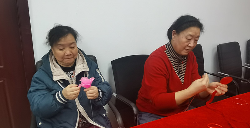 此次手工课程以丝绸玫瑰花制作为核心,成品将作为2月14日情人节的专属信物,为有情人传递真挚情谊。对于丝绸玫瑰的制作,队员们早已驾轻就熟:裁剪丝绸、火焰塑形、铁丝缠绕、固定花萼,每一个步骤都娴熟流畅、有条不紊。彩色丝绸在指尖灵活翻飞,经火焰轻轻烤制后,花瓣便呈现出自然舒展的优美弧度;再以铁丝为骨,层层包裹、精细调整,一朵朵形态饱满、色泽鲜亮的玫瑰花便次第绽放。马洪花队长在现场穿梭指导,不时俯身点拨细节技巧:“花瓣边缘烤的时候要匀速转动,这样卷边才匀称自然”“内层花瓣缠得紧一点,花型会更立体饱满”。队员们或低头专注塑形,或轻声交流创作心得,灵巧的双手在丝绸与铁丝间来回穿梭,不多时,活动室里便“绽放”出一片赏心悦目的“花海”——红色款热烈似火,承载着炽热告白;粉色款温柔缱绻,诉说着缱绻情愫;紫色款优雅别致,暗藏着深沉牵挂。每一片花瓣都凝聚着指尖的温度,每一缕纹路都彰显着用心的执着,每一朵玫瑰都饱含着义工们的爱心与巧思。