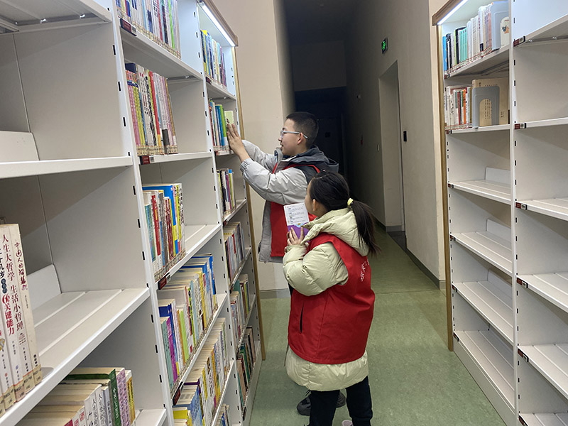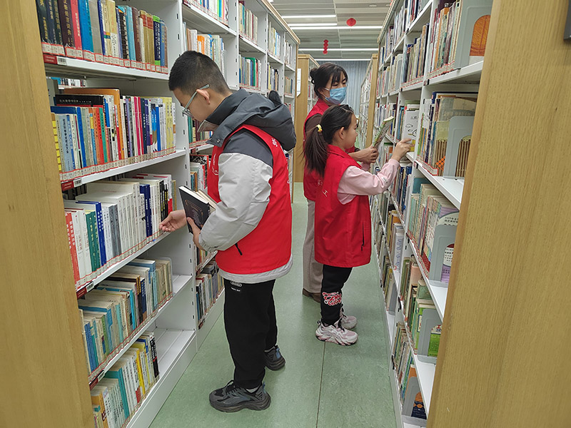 2026年1月2日,元旦假期第二天,爱之赢公益荟在市图书馆组织的整理图书志愿活动中,迎来了一群特殊志愿者——李馨一家四口。在阅览区,13岁的李午宁和8岁的李乙可穿着略显宽大的志愿者马甲跟着爸爸妈妈,在副队长晓乐老师的指导下正仔细地进行图书整理、修复、归位。