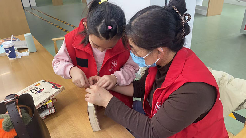 短短几小时,孩子们已能很好的给书整理和修复、辨识常见图书类别,队长武冬云表示,家庭志愿者的加入不仅仅是带孩子们干点活那么简单,更营造了爱书氛围,同时也可以培养孩子们的专注力、建立很好的亲子关系。