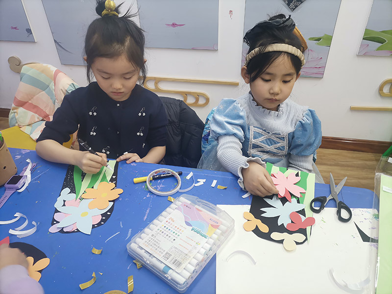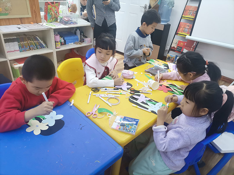 圆是最初的符号。此刻,它从草间弥生的画中跳出,化为孩子们指尖跃动的灵感。稚嫩小手握着安全剪刀,红黄蓝绿的卡纸慢慢舒展成花瓣形状。圆点贴纸被郑重其事地排列——有的如列队的士兵般整齐,有的似撒出的糖果般俏皮。女孩专注地将粉色波点缀满花瓣边缘;男孩则尝试用大小不一的圆点拼出笑脸图案。