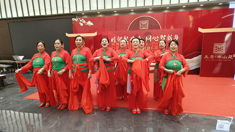 欢乐的时光悄然流淌,当熟悉的旋律再次响起,北师乐缘舞蹈队再次登台,带来压轴舞蹈《过年了》。队员们精神饱满、活力四射,欢快的舞步踏着新春的节拍,喜庆的旋律萦绕在会场每个角落,将现场气氛推向最高潮。台下观众纷纷跟着节奏拍手附和,不少居民起身与舞者隔空互动,有的跟着哼唱,有的跟着摇摆,整个会场成为一片欢乐的海洋。舞姿、歌声、笑声交织在一起,勾勒出一幅邻里和睦、同心贺岁的美好画卷。整场联欢会历时两个多小时,节目精彩不断,互动其乐融融,始终洋溢着温馨和谐、喜庆热烈的氛围,每一张笑脸都定格成最动人的新春风景。