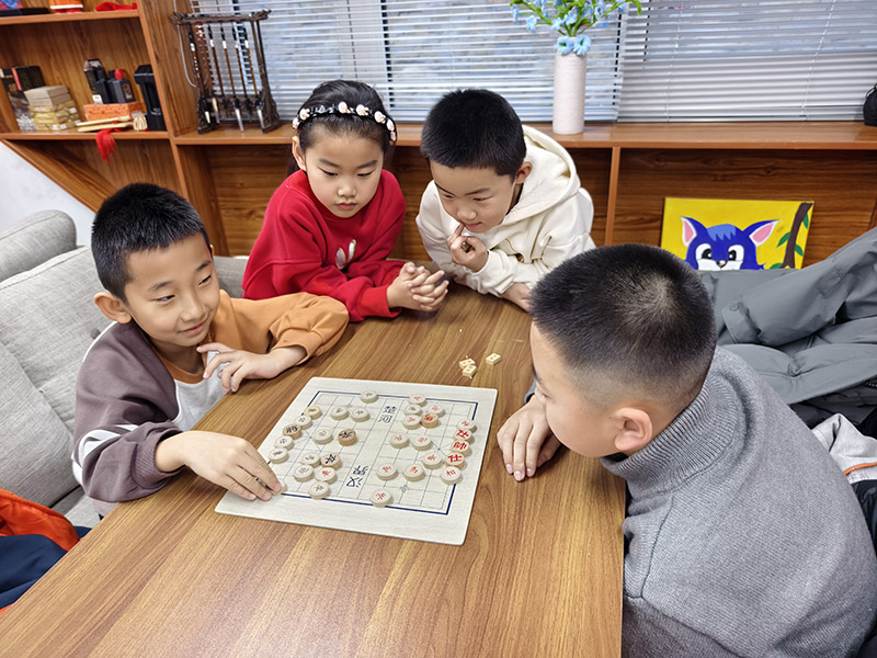课堂不再是安静的听讲,而是被分成了钢琴、书写、象棋三个热闹的赛场。智能钢琴前,几个孩子的小手在琴键上欢快跳跃,流畅的旋律伴着屏幕里的动画节奏流淌出来,引来周围小伙伴的阵阵掌声;书写区的孩子们握着笔,在纸上专注地书写,比拼着速度与工整,志愿者老师在一旁轻声指点,不时为孩子们的进步露出欣慰的笑容;象棋桌前更是气氛热烈,小棋手们眉头紧锁、步步为营,每一步落子都带着不服输的劲儿,赢了的孩子欢呼雀跃,输了的也笑着摆手:“下次我肯定能赢你!”