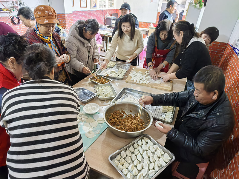 最具人间烟火气的还是村民主动参与一起进入角色,一起互动。志愿者和爷爷奶奶的村晚更加接地气,温暖岁月抚人心。最具年味的还是福德仁爱公益队队长毛艳芳带领部分队员,提前备好面粉、馅料等食材,和村民们在活动现场搭起案板,一场热闹非凡的“百人饺子宴”正式开席。志愿者与村民们围坐一堂,揉面、擀皮、包馅,动作娴熟默契十足。欢声笑语中,一个个饱满圆润的饺子陆续成型,下锅后蒸腾的热气散发在整个活动现场。老人们围在一旁,看着忙碌的身影,尝着鲜香的饺子,脸上洋溢着幸福的笑容。这一碗碗热气腾腾的饺子,不仅承载着新春的祝福,更凝聚着公益团队的爱心与关怀,让许家庄的老人们在集体的温暖中,度过一个难忘而温馨的新春佳节。张家口慈善义工联合会还专门派人进行了现场直播。
