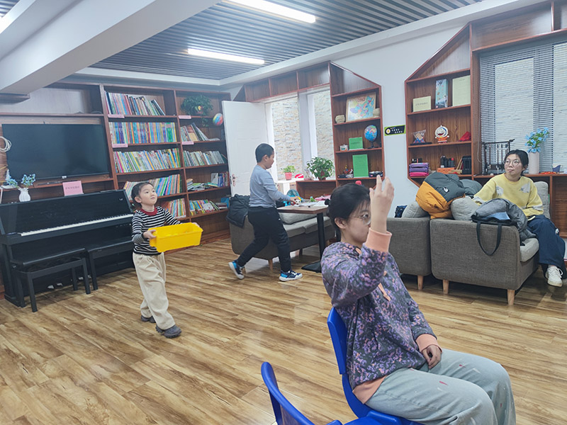 岭秀城社区活动中心内暖意融融,欢声笑语穿透门窗,志愿者老师正带着一群孩童开启一场趣味十足的健体思维接球反应游戏,为冬日的社区注入满满活力。 活动伊始,孩子们在老师的引导下两人一组,迅速分成三组。每组一人负责向后抛球,另一人手持盒子专注接球,以单位时间内接球数量决胜负的规则一宣布,孩子们的眼睛瞬间亮了起来,跃跃欲试地摩拳擦掌。