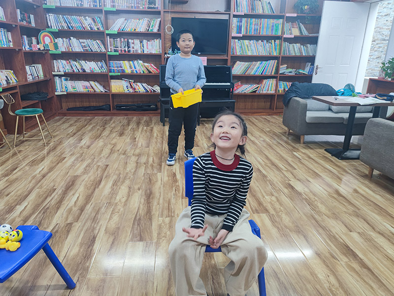 首轮练习中,志愿者老师耐心示范扔球的力度控制与接球的角度预判,孩子们听得认真、练得投入。从最初的生疏试探到逐渐找到节奏,大家慢慢掌握了扔球的技巧——既要把握力度让球平稳飞行,又要结合队友的位置调整方向;接球方则需紧盯球体轨迹,精准判断落位,时而跨步前移,时而侧身追赶,全神贯注地用盒子承接每一次抛来的球。 正式比拼环节更是精彩迭出。孩子们各显风采,有的带着孩童特有的顽皮,抛球时故意变换角度,引得队友笑着奔跑追赶;有的则透着稳重聪慧,抛球精准、接球从容,尽显淑女风范。“你扔我接”的互动中,抛球者需凭借思维预判队友的移动节奏,接球者则要靠敏锐感觉与快速反应追逐落球,每一次成功接球都伴随着欢呼雀跃,偶尔的失手也化作相视一笑的默契。跑动间,孩子们的体能得到了充分锻炼,而对球路的判断与团队配合的磨合,更让思维在趣味中高速运转。