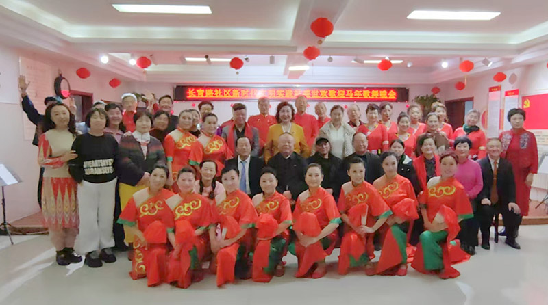2月9日,由福德仁爱公益队宏声艺术团主演,明德南街道办事处主办,长青路社区协办,福德仁爱公益队艺术团团长张伟总策划,宏声艺术民乐队、长青艺术团、影视产业协会舞蹈团、心连心银座新疆舞蹈团共同参与的以“欢欢喜喜过大年,盛世歌舞迎马年”为主题的长青路社区歌舞迎新春活动在社区二楼群众文艺活动中心举办。区、街、社区相关领导及非遗传承人文艺界代表参加观看联欢会文艺演出。桥西区文联主席苏元炜、福德仁爱公益队队长毛艳芳、以及街道、社区有关领导观看了此处演出。