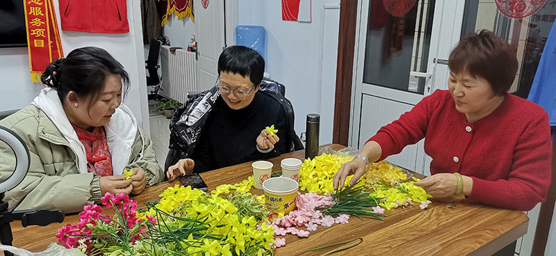 为丰富巾帼志愿者精神文化生活,增添新春喜庆氛围,2026年二月二六日春风助残义工队组织巾帼志愿者在东宁街社区办公室开展仿真插花制作主题活动,参加活动的有队长刘俊琴,志愿者韩凤英、陈晓英、莘玉霞等人,大家以花寄情、巧手创作,在温馨雅致的氛围中共度美好时光,传递新春祝福。